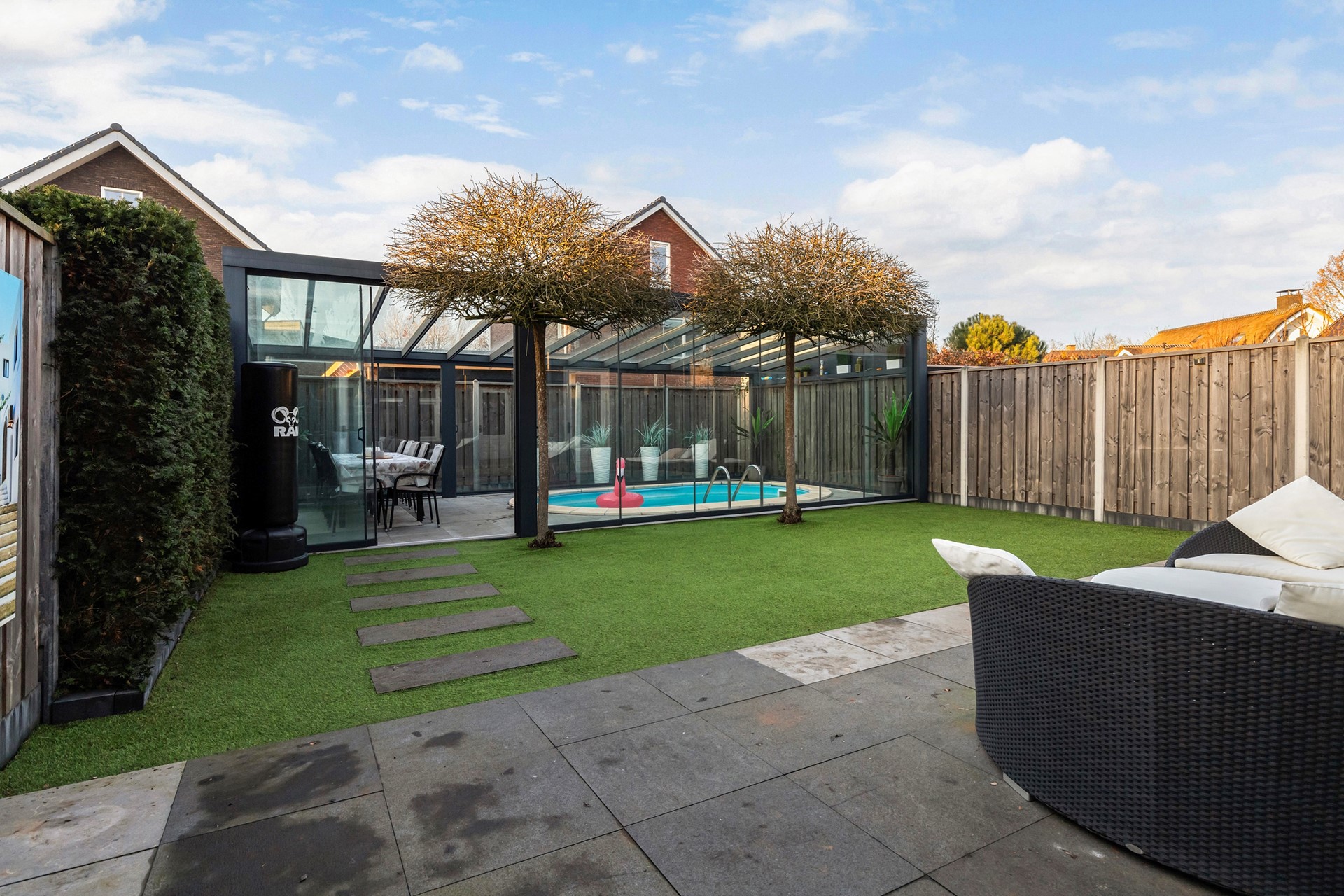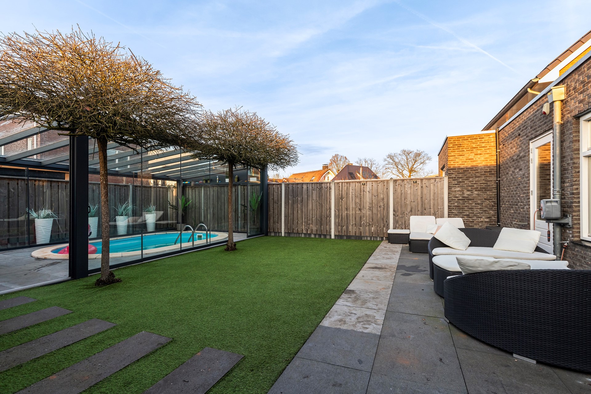 De fraai aangelegde tuin is ontworpen als een privéresort. Het zwembad en het exclusieve poolhouse creëren een uitzonderlijke buitenruimte voor ontspanning, wellness en entertainment. Hier geniet u in volledige privacy van lange zomerdagen en sfeervolle avonden.