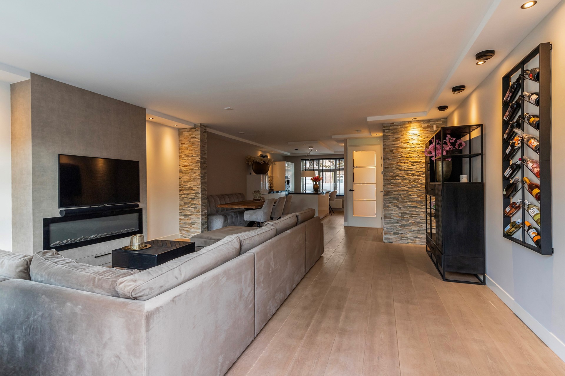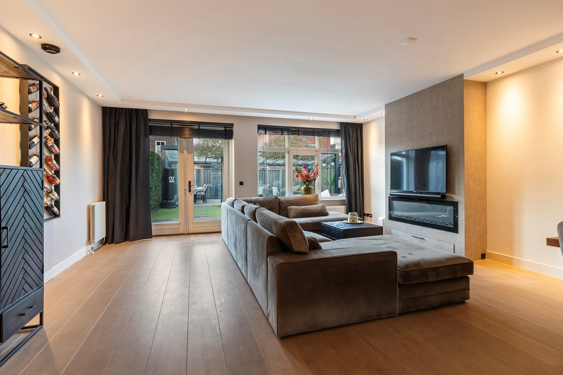 De begane grond wordt gekenmerkt door een indrukwekkende ruimtelijkheid, een open en vloeiende indeling en een overvloed aan daglicht. De royale woonkamer en eetruimte vormen samen een elegant geheel met directe verbinding naar de tuin. Grote raampartijen zorgen voor een optimale relatie tussen binnen en buiten.
