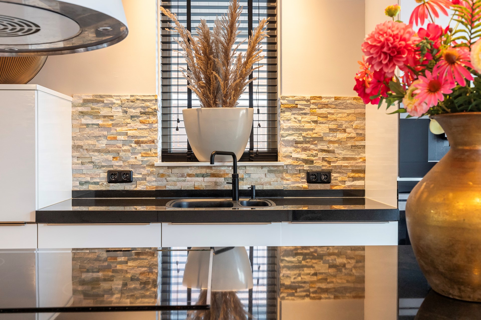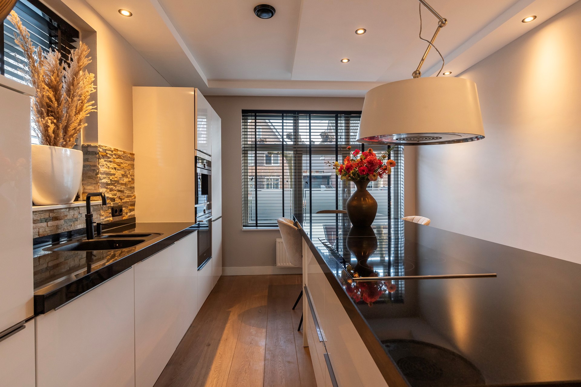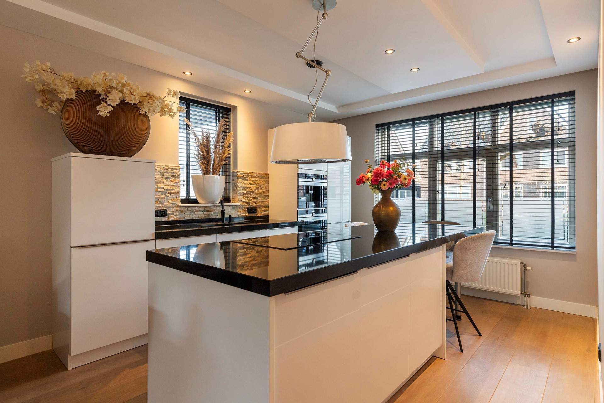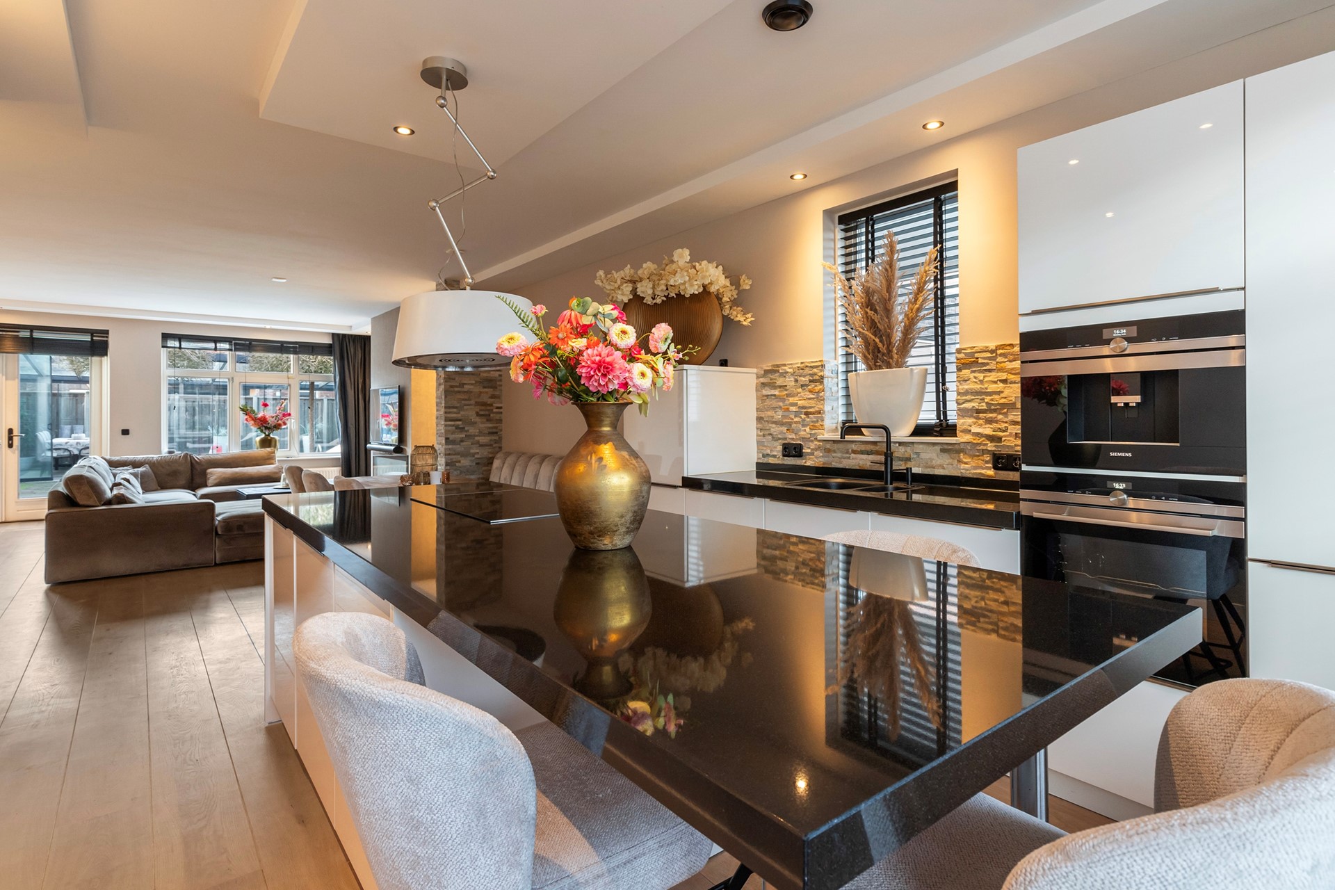 De exclusieve leefkeuken met kookeiland is ontworpen voor de echte liefhebber van comfort en gastronomie. Voorzien van hoogwaardige inbouwapparatuur, royale werkbladen en een verfijnde afwerking vormt de keuken het stijlvolle middelpunt van de woning.