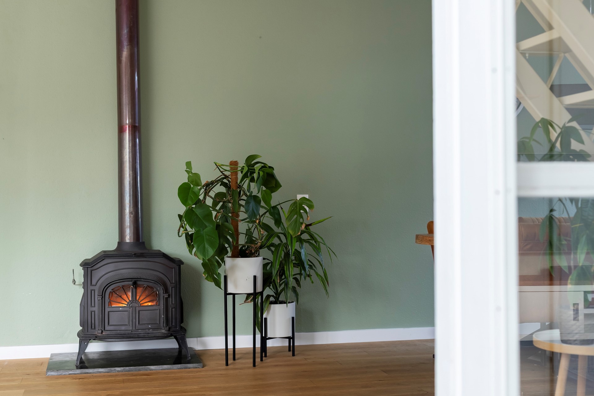 Drie verwarmingsmogelijkheden: cv-ketel, open haard en airco