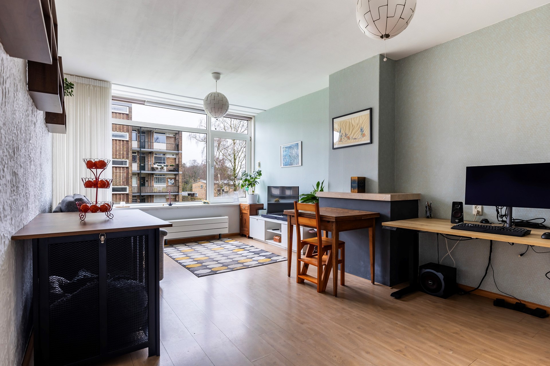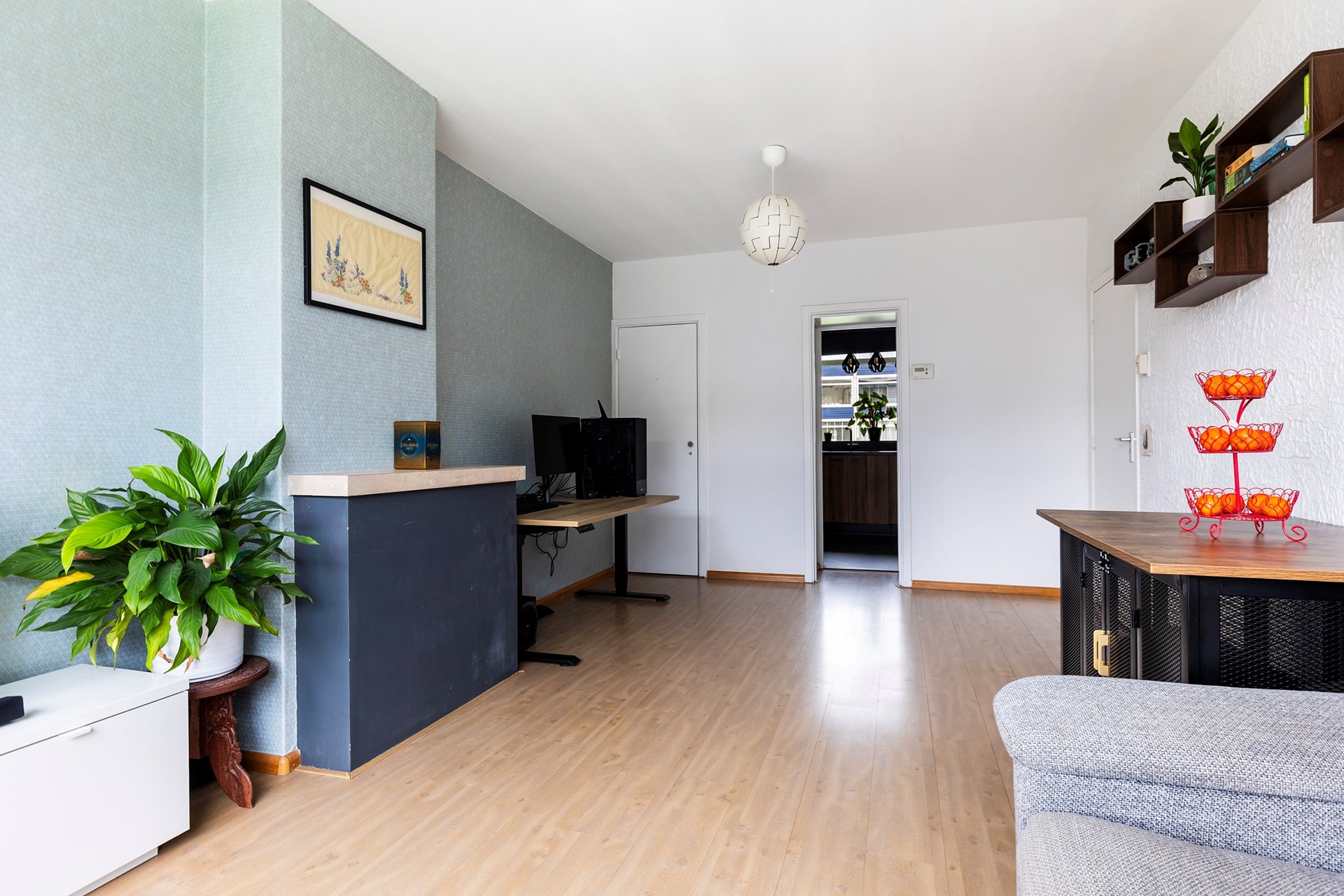 De ruime en lichte woonkamer vormt het hart van de woning. Dankzij de grote raampartijen is er veel natuurlijk licht, wat zorgt voor een aangename sfeer. Er is voldoende ruimte voor een comfortabele zithoek en een eethoek.