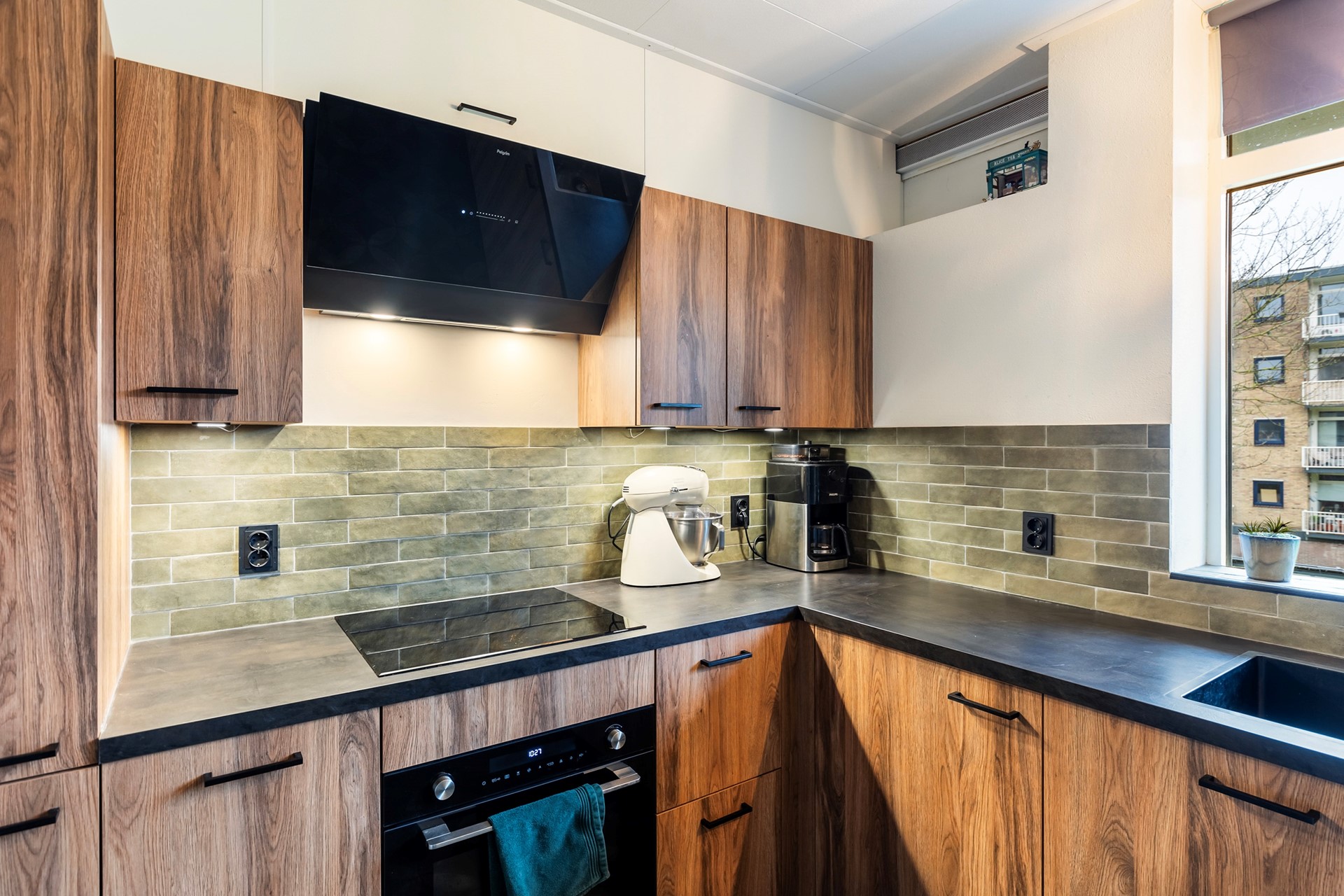 De moderne keuken is praktisch ingericht en voorzien van eigentijdse apparatuur. De keuken biedt voldoende werk- en opbergruimte, waardoor koken hier prettig en efficiënt is.