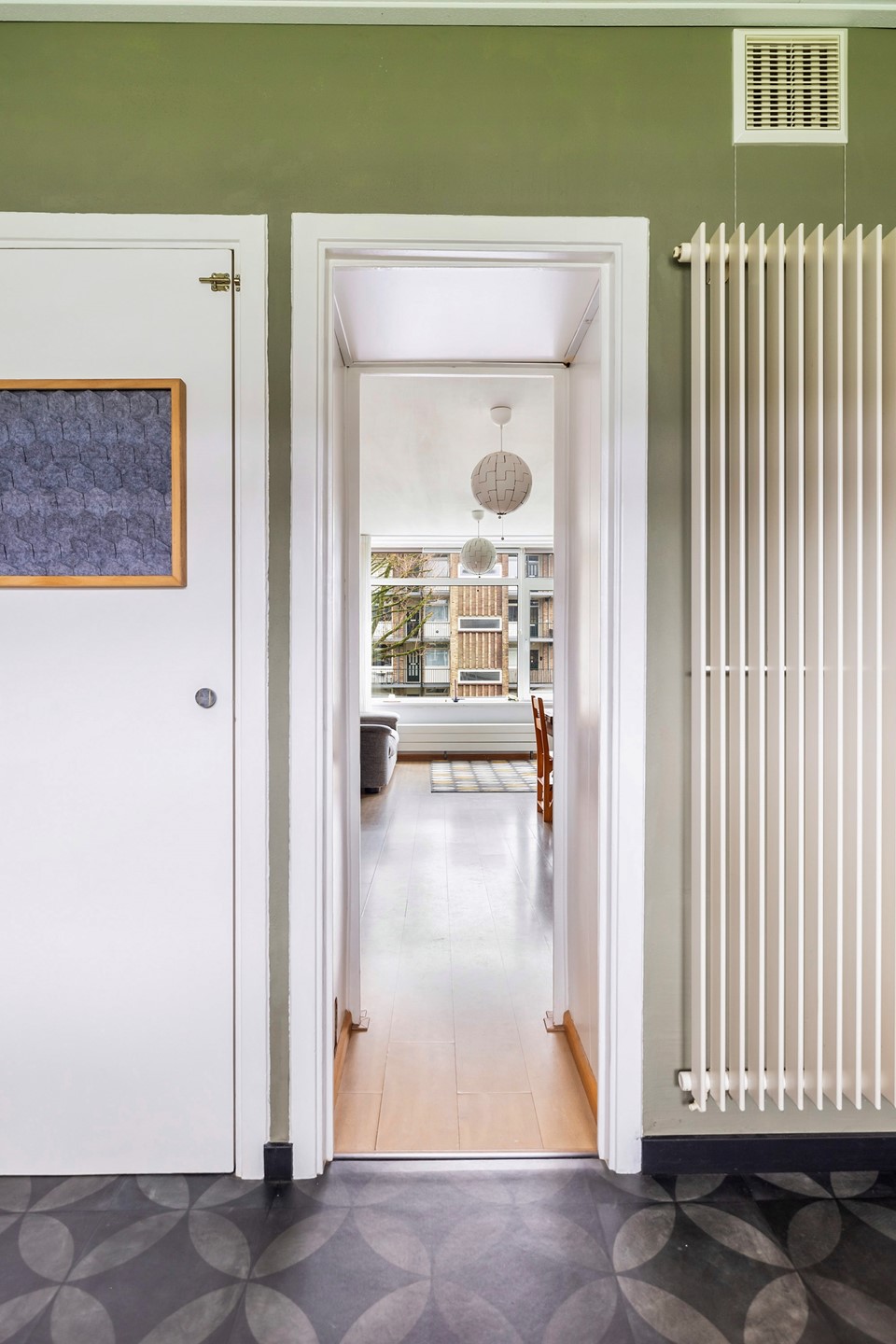 Via het gezamenlijke trappenhuis bereik je de entree van het appartement op de tweede verdieping.
