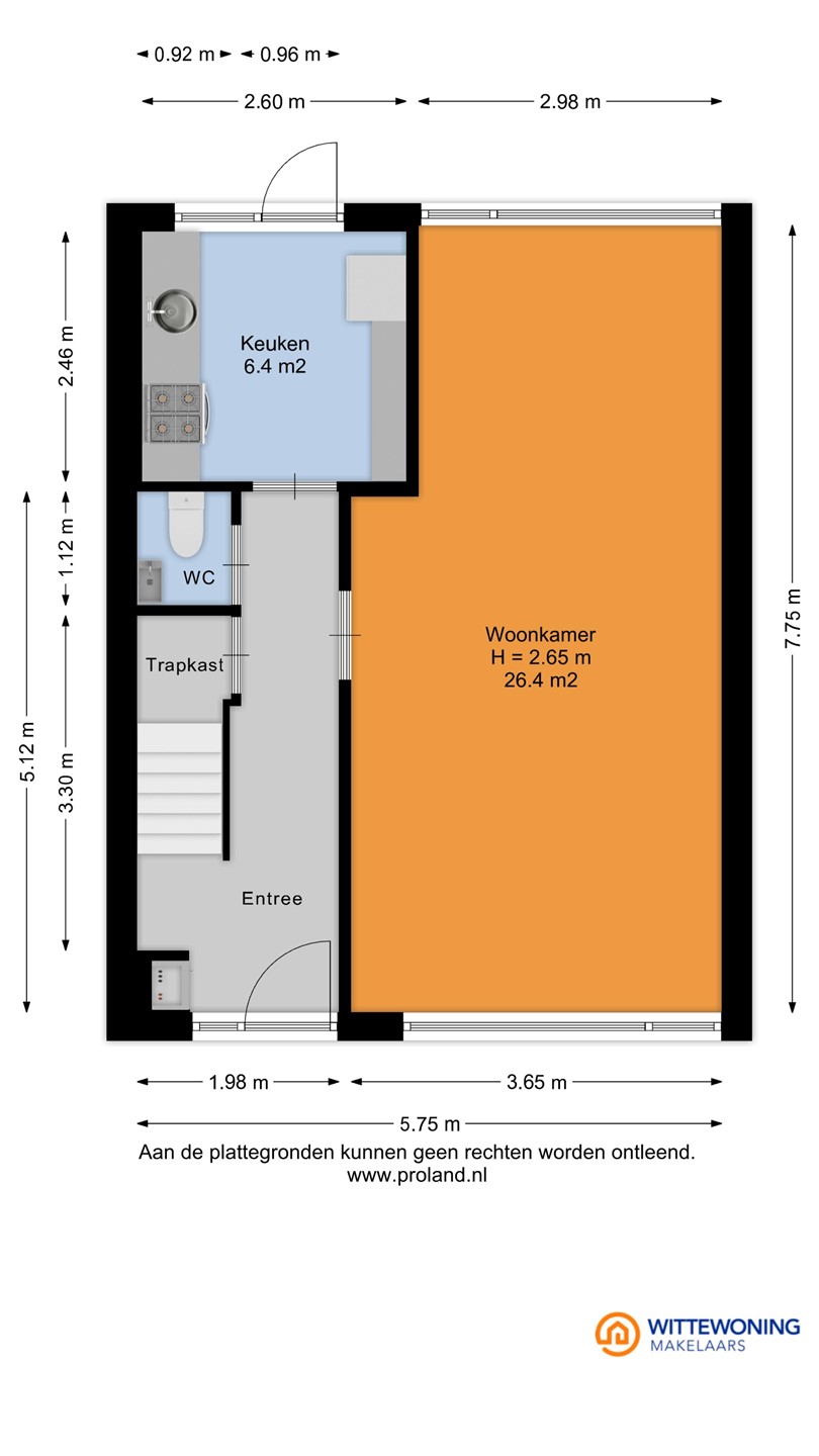 De woning beschikt over een lichte woonkamer en een gesloten keuken, beide in eenvoudige staat. De indeling is praktisch en biedt diverse mogelijkheden om het geheel te moderniseren en eventueel te herindelen.