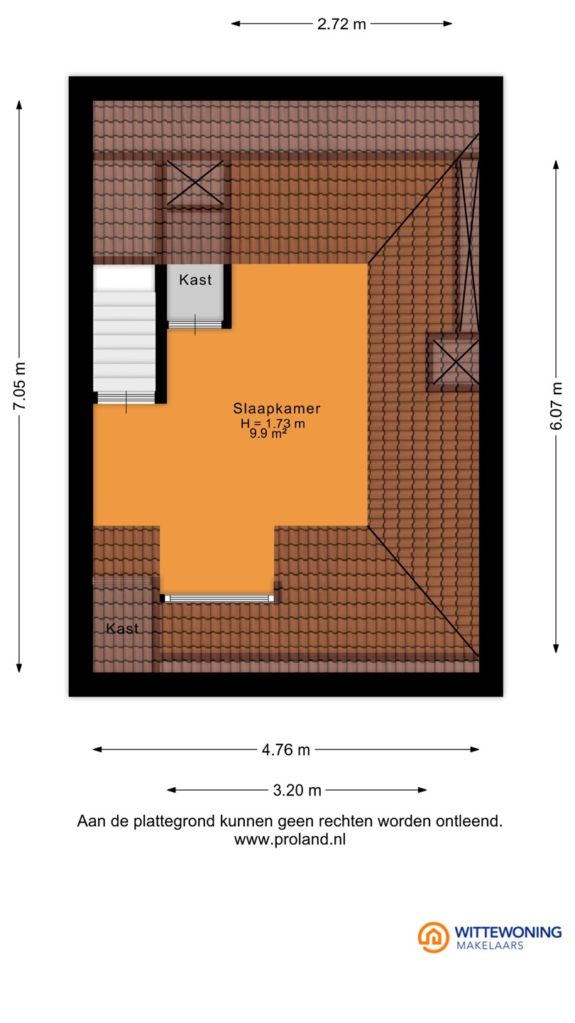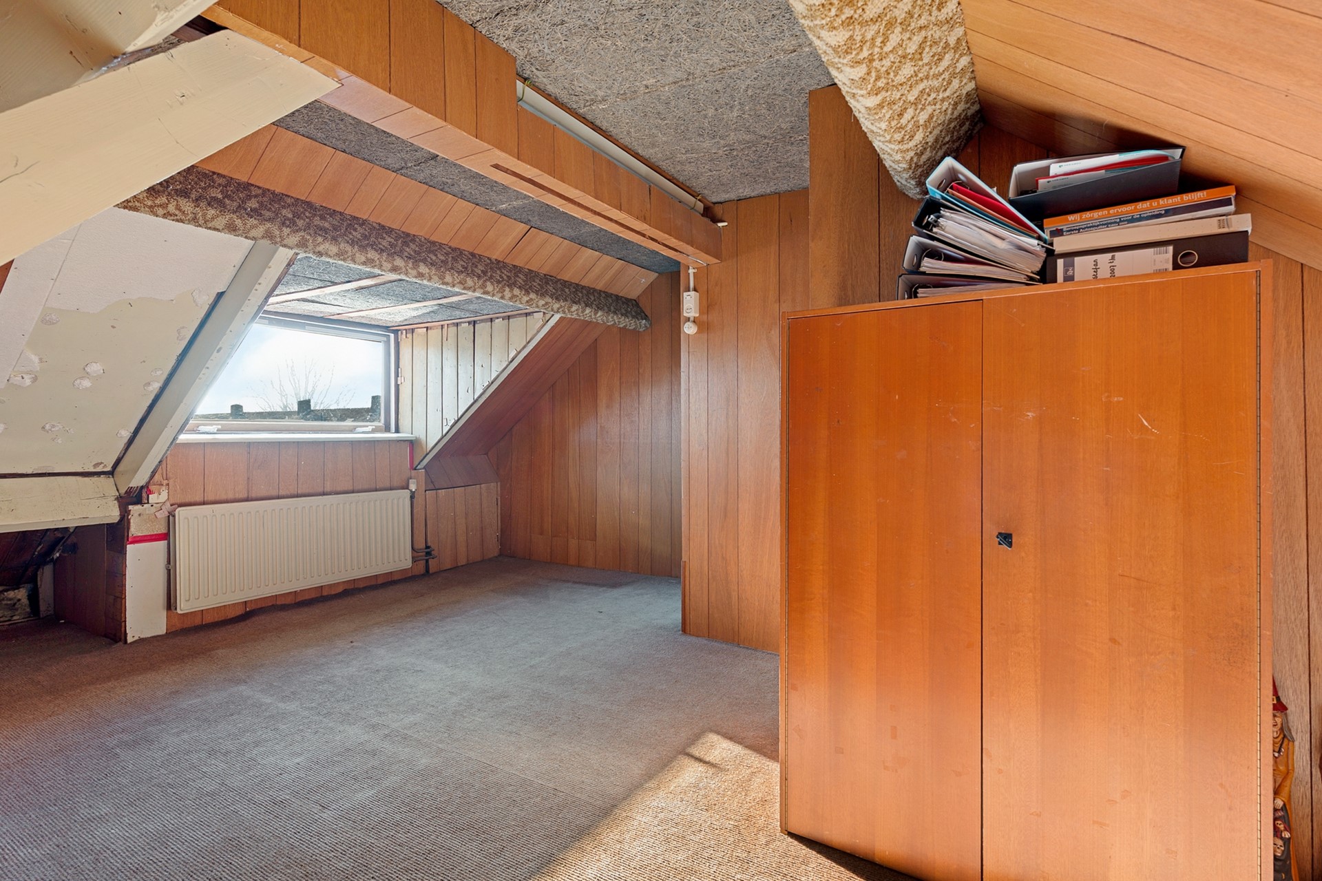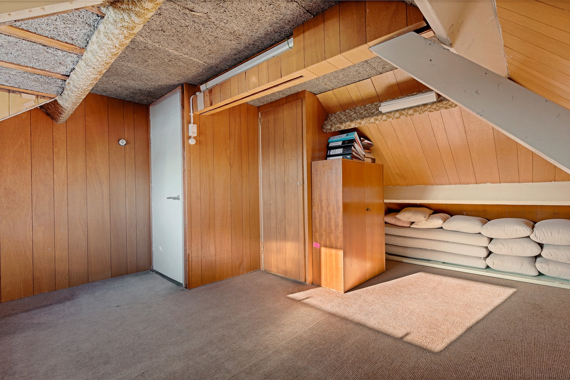 De zolder is het enige wat er aan deze woning nog opgeknapt kan worden omdat er weinig mee gedaan is. De grondoppervlakte is 24m², er zit een kleine dakkapel aan de voorzijde en de gordingen in het zicht.