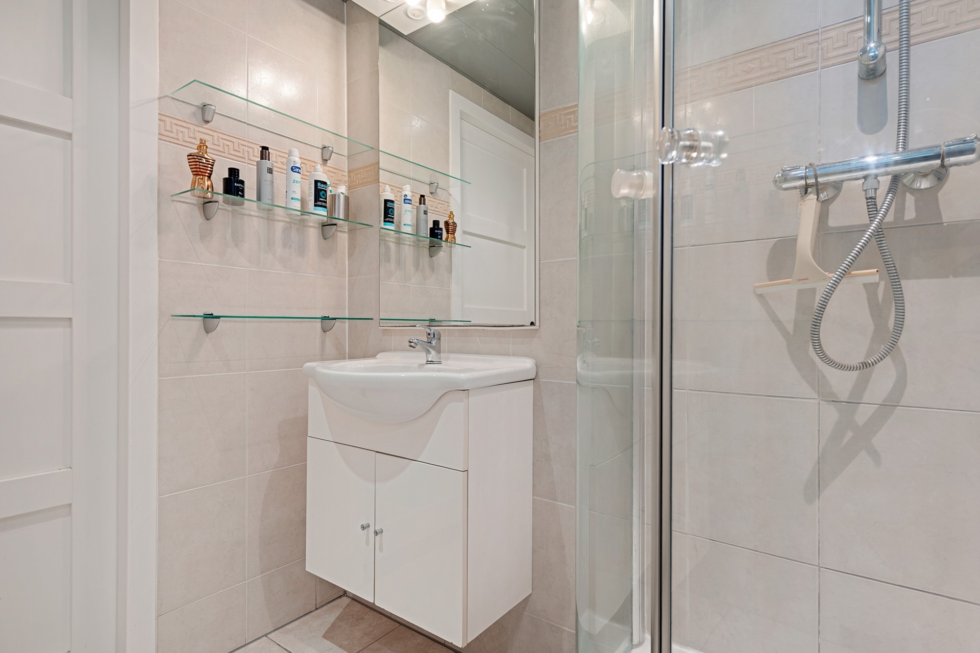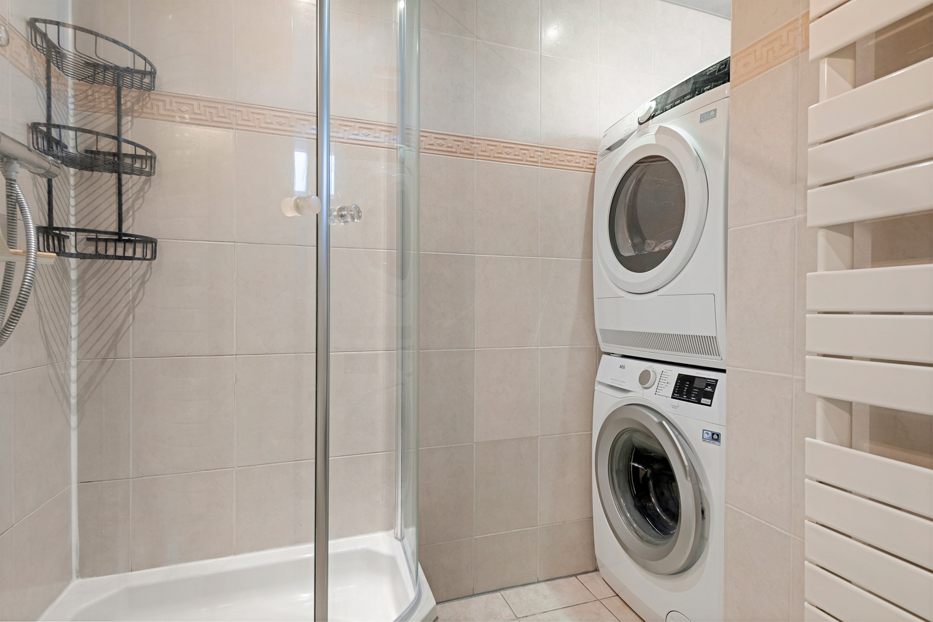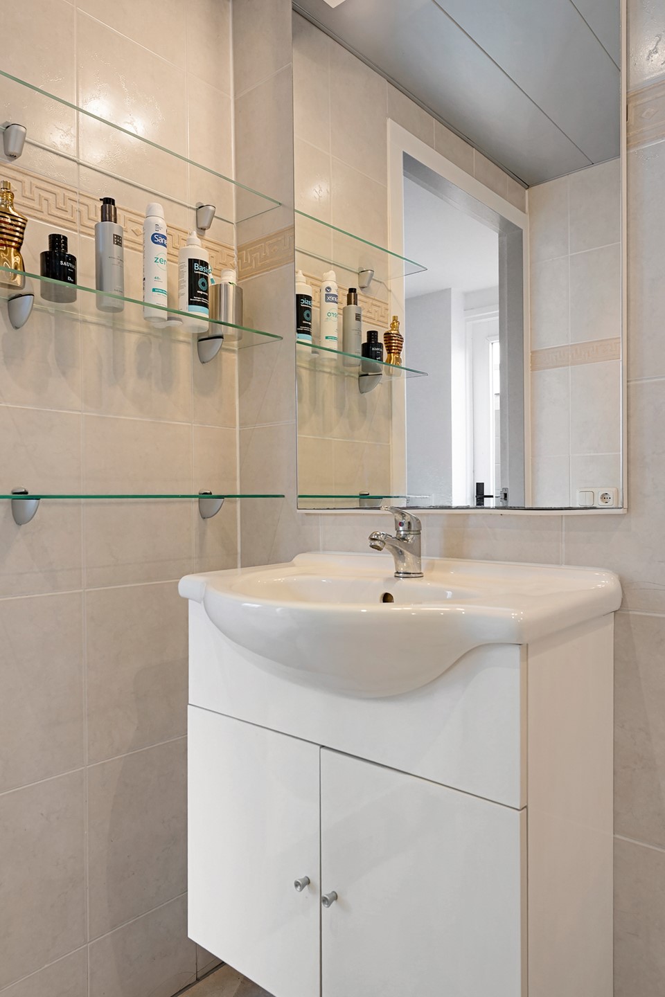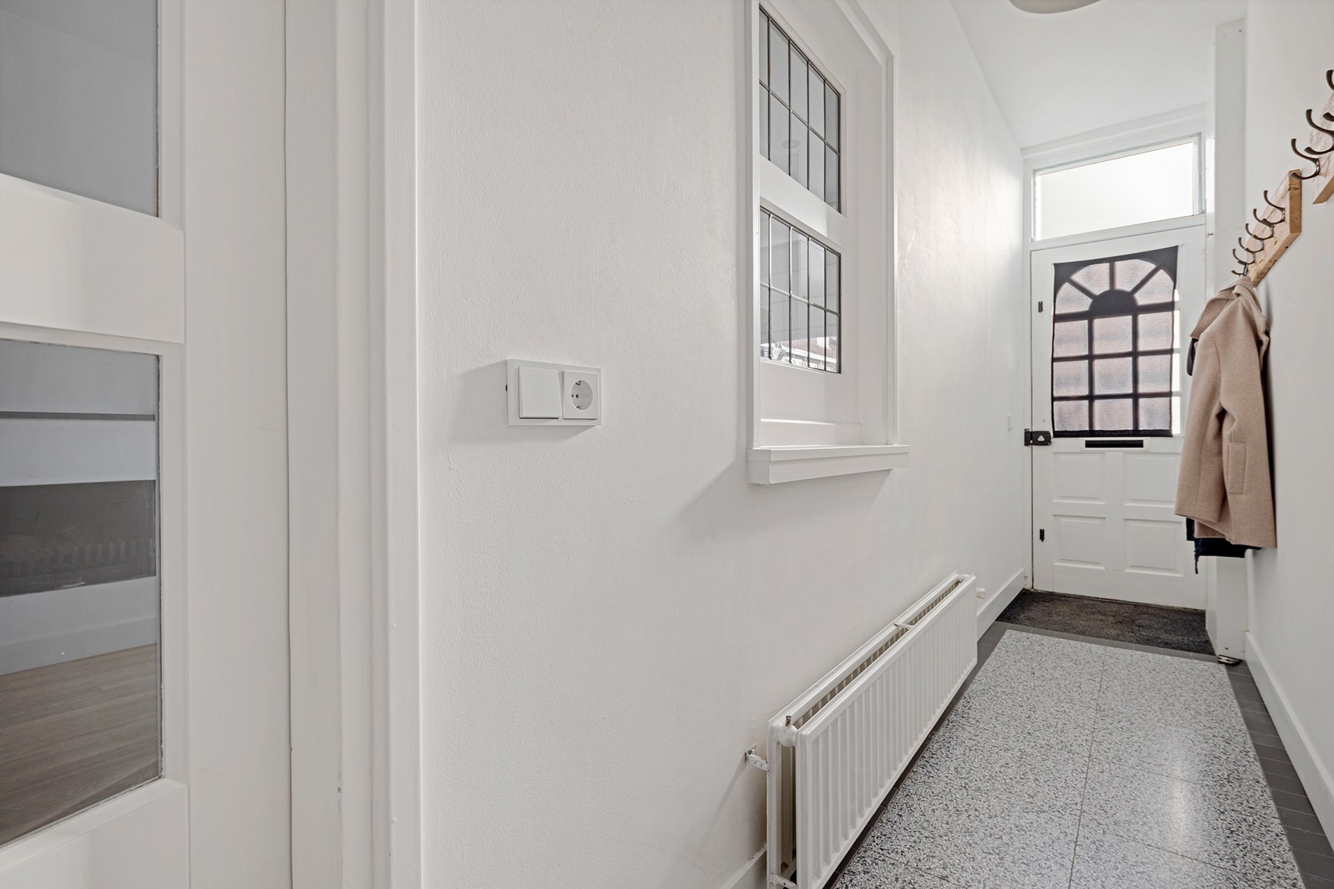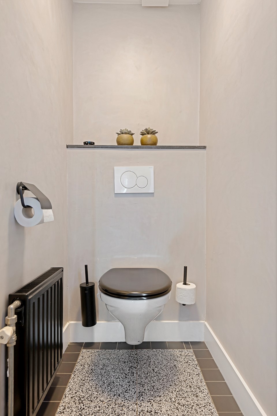 Entree hal met vernieuwde meterkast (6 groepen en 2 aardlekschakelaars), prachtige tegelvloer, trapopgang en toegangsdeur tot de woonkamer. De woonkamer is afgewerkt met een laminaatvloer met vloerverwarming, stucwerkwanden, stucwerk, open haard en kelderkast. Vanuit de woonkamer toegang tot keuken. De keuken is in 2022 vernieuwd en voorzien van koelkast met diepvries, afzuigkap, 4 pits gaskookplaat, vaatwasser en combimagnetron. Vanuit de keuken toegang tot de achterdeur, badkamer en separaat toilet. De badkamer is geheel betegeld en er is een vaste wastafel, douchecabine en de aansluiting wasmachine/droger. Toilet en badkamer hebben beide mechanische ventilatie.