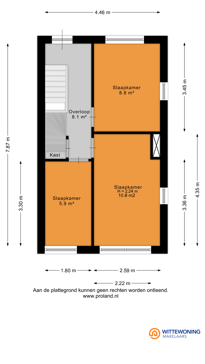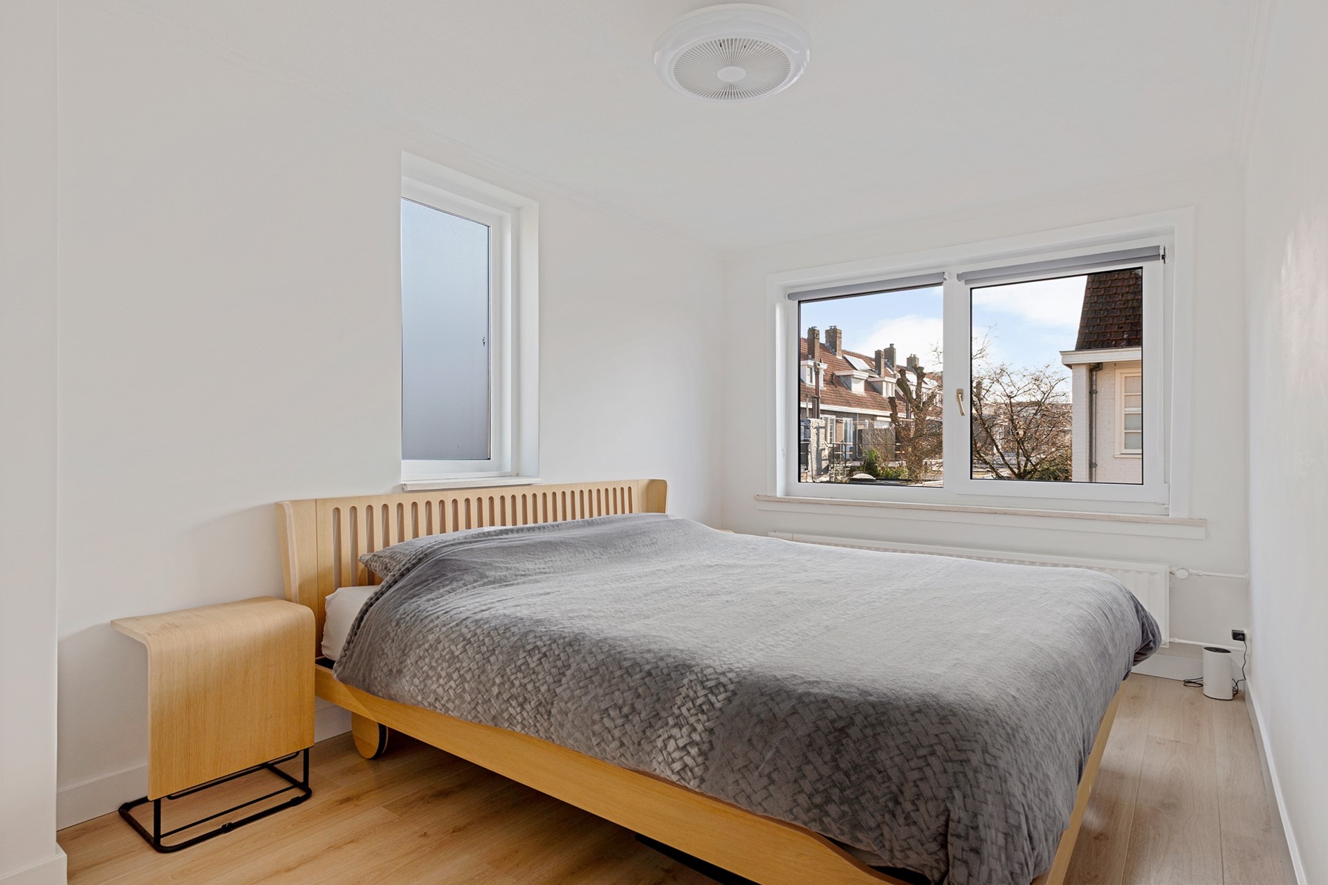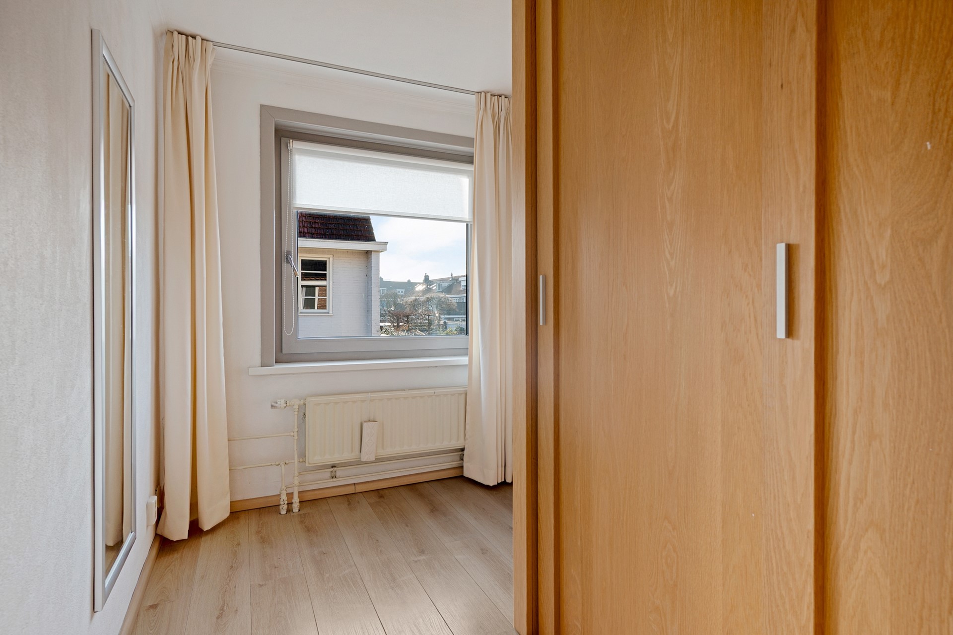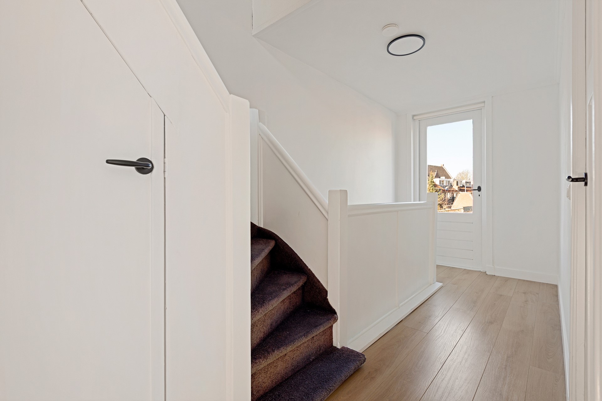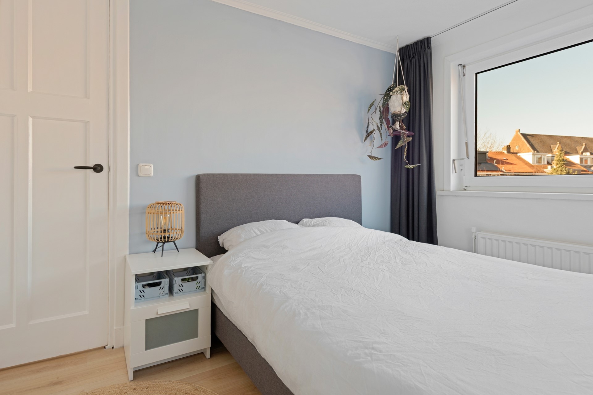 Overloop biedt toegang tot een inbouwkastje, buitendeur tot het platte dak en drie slaapkamers. Eén slaapkamer is aan de achterzijde gelegen en heeft een rolluik en extra raam. Twee slaapkamers zijn aan de voorzijde gelegen. Alle slaapkamers zijn voorzien van een laminaatvloer, stucwerkwanden en stucwerkplafonds.