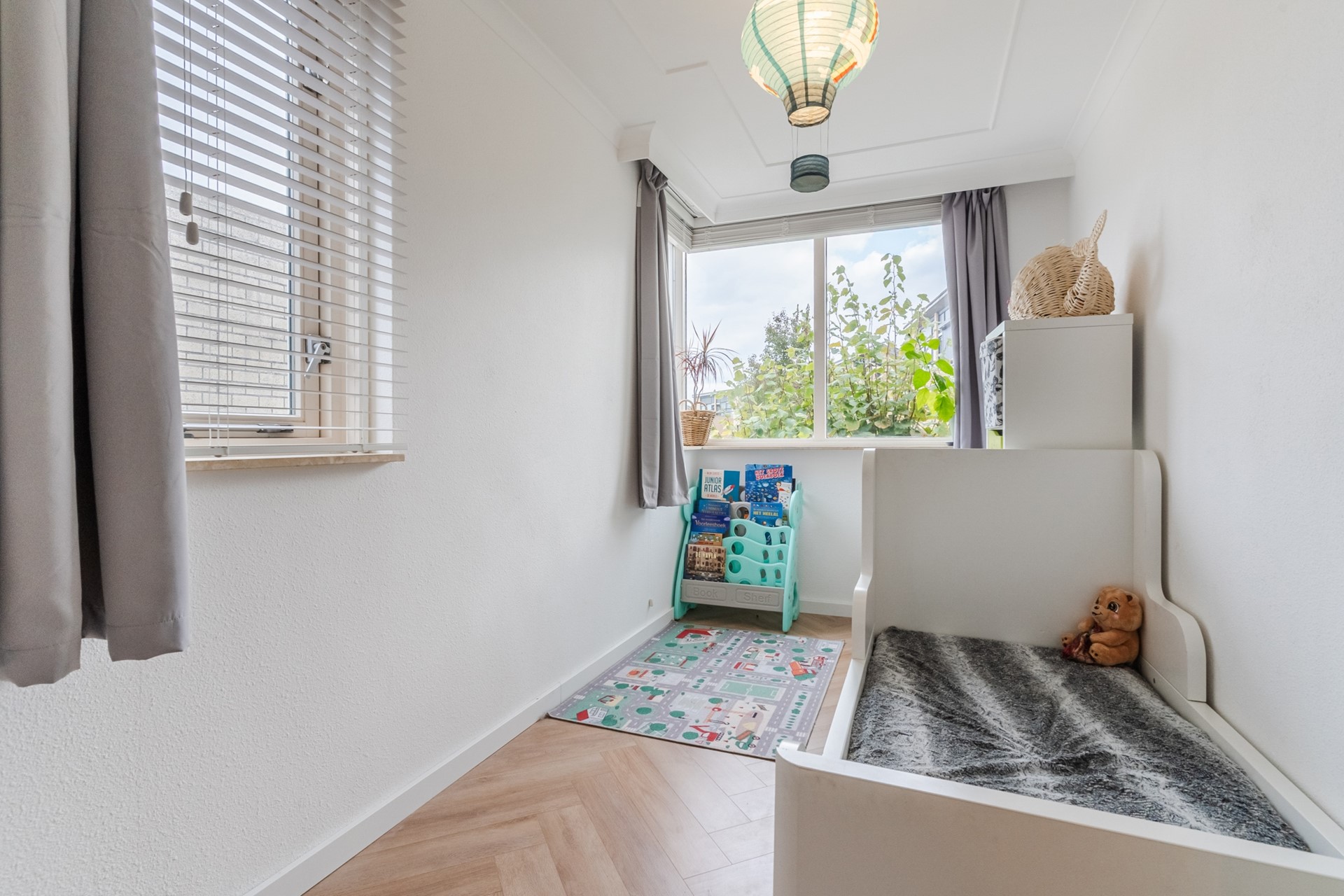 De overloop op de tweede verdieping geeft toegang tot bergruimte onder de kapschuinte en een ruime vierde slaapkamer. De slaapkamer is voorzien van een dakkapel en grote raampartij aan de voorzijde waardoor het een ruime kamer is met veel daglicht. Tevens is hier, in kastruimte, de cv-installatie gesitueerd (Nefit HR-combiketel uit 2013). Via de kamer is er toegang tot het dakterras gelegen aan de voorzijde van de woning. Deze verdieping beschikt over hetzelfde hoge afwerkingsniveau als de eerste verdieping en beschikt over een airco-unit.