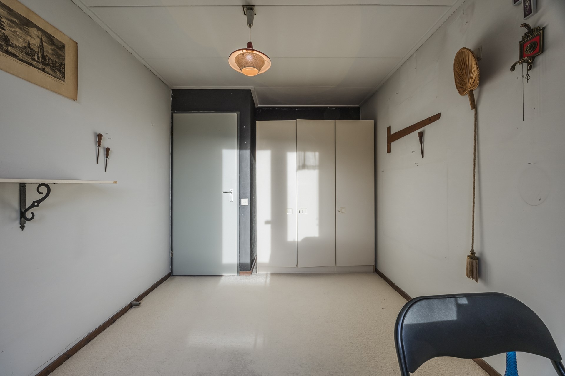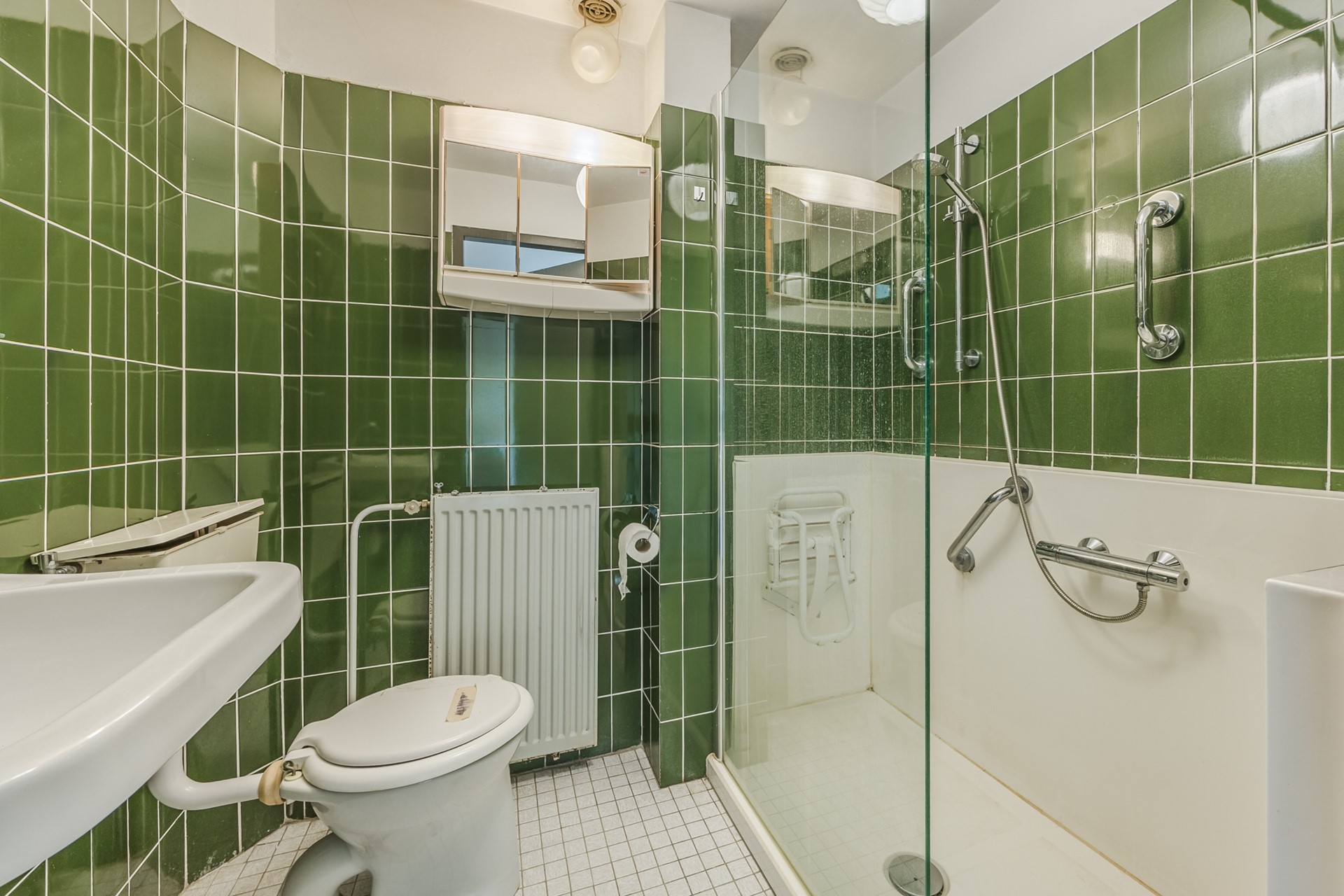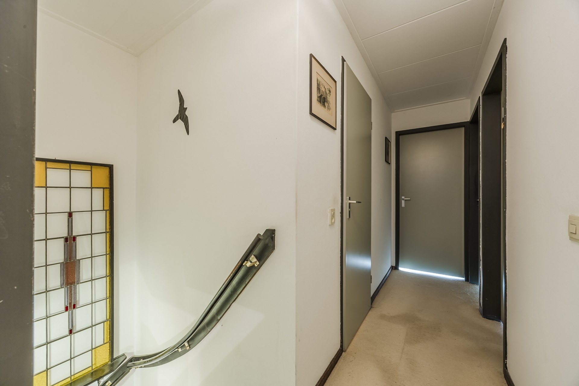 De overloop geeft toegang tot vier slaapkamers en de badkamer. Eén van de slaapkamers aan de achterzijde is voorzien van een balkon (4m2) met zicht op de achtertuin. De badkamer is functioneel ingedeeld met inloopdouche, toilet, radiator, meubel en wastafel.