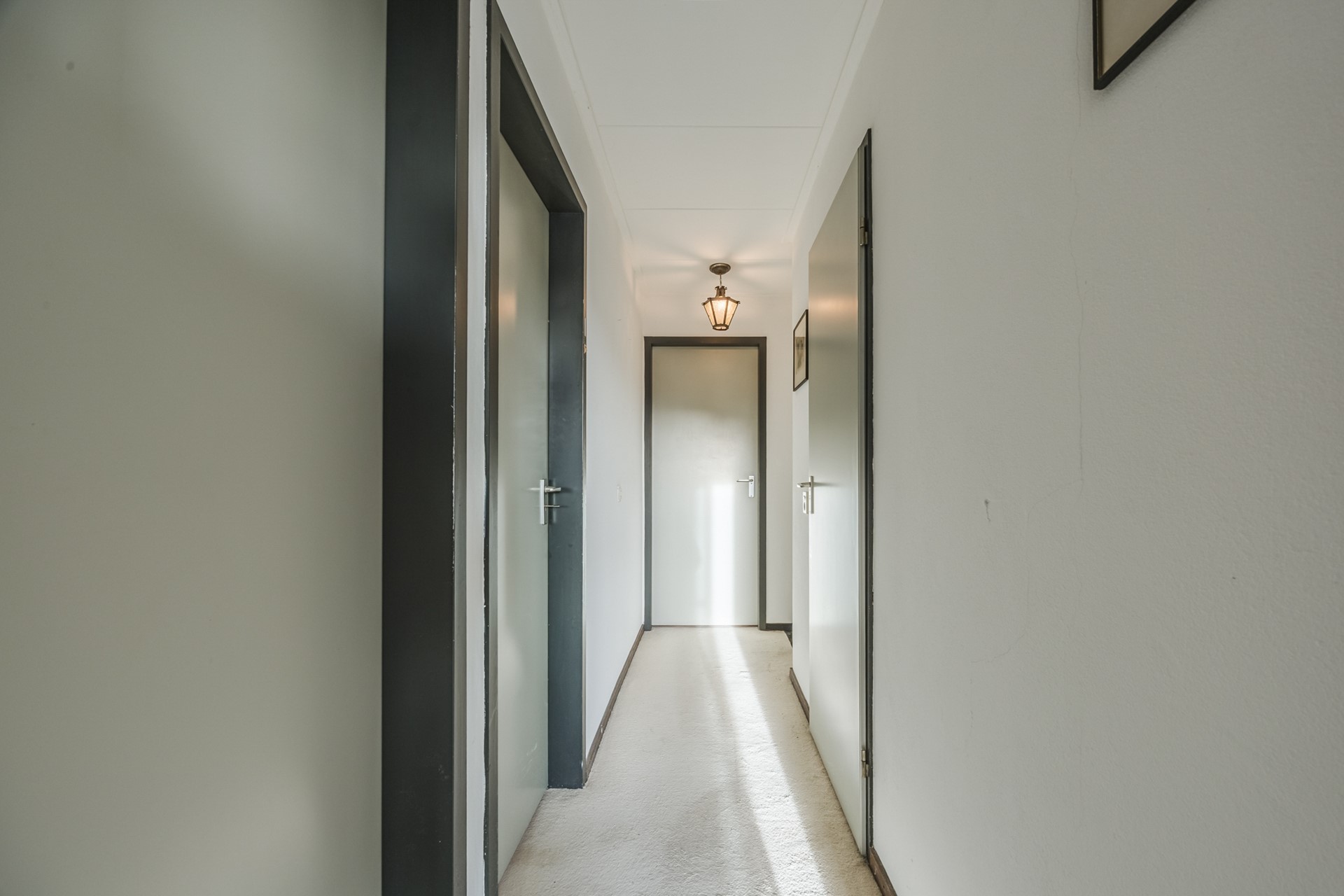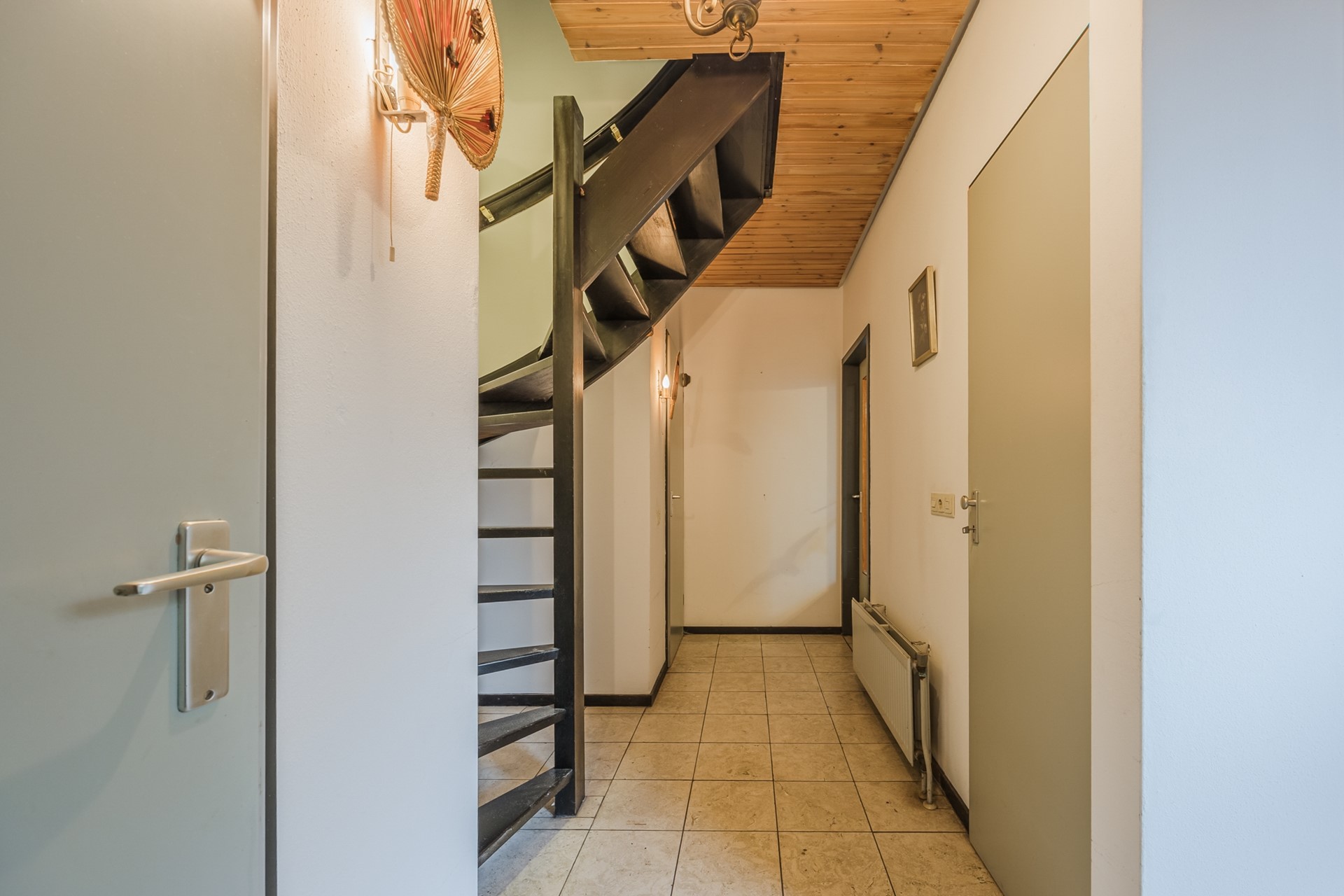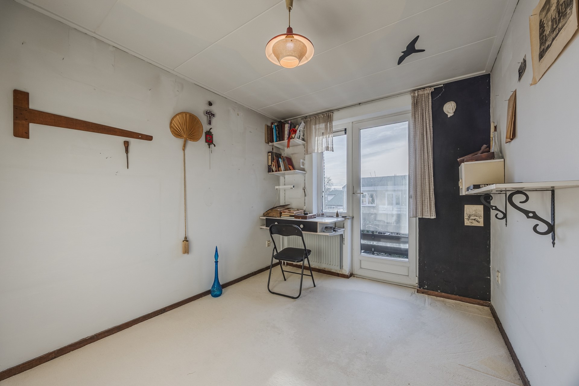 De overloop geeft toegang tot vier slaapkamers en de badkamer. Eén van de slaapkamers aan de achterzijde is voorzien van een balkon (4m2) met zicht op de achtertuin. De badkamer is functioneel ingedeeld met inloopdouche, toilet, radiator, meubel en wastafel.